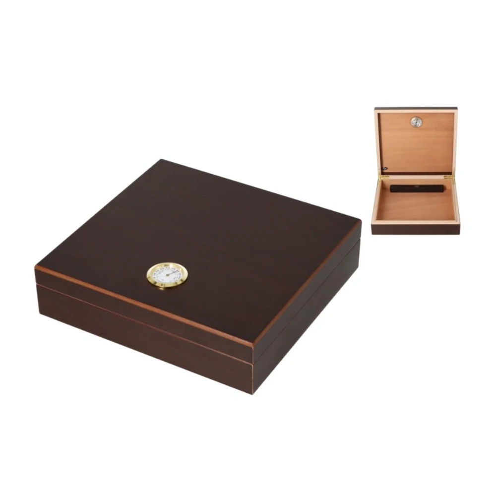 Dieser schlanke braune Humidor ist ideal für den täglichen Gebrauch und auf Reisen. Dank seiner Innenhülle aus Zedernholz bietet er eine optimale Umgebung für Ihre Zigarren, während er aufgrund seiner kompakten Größe leicht in einen kleinen Raum passt.