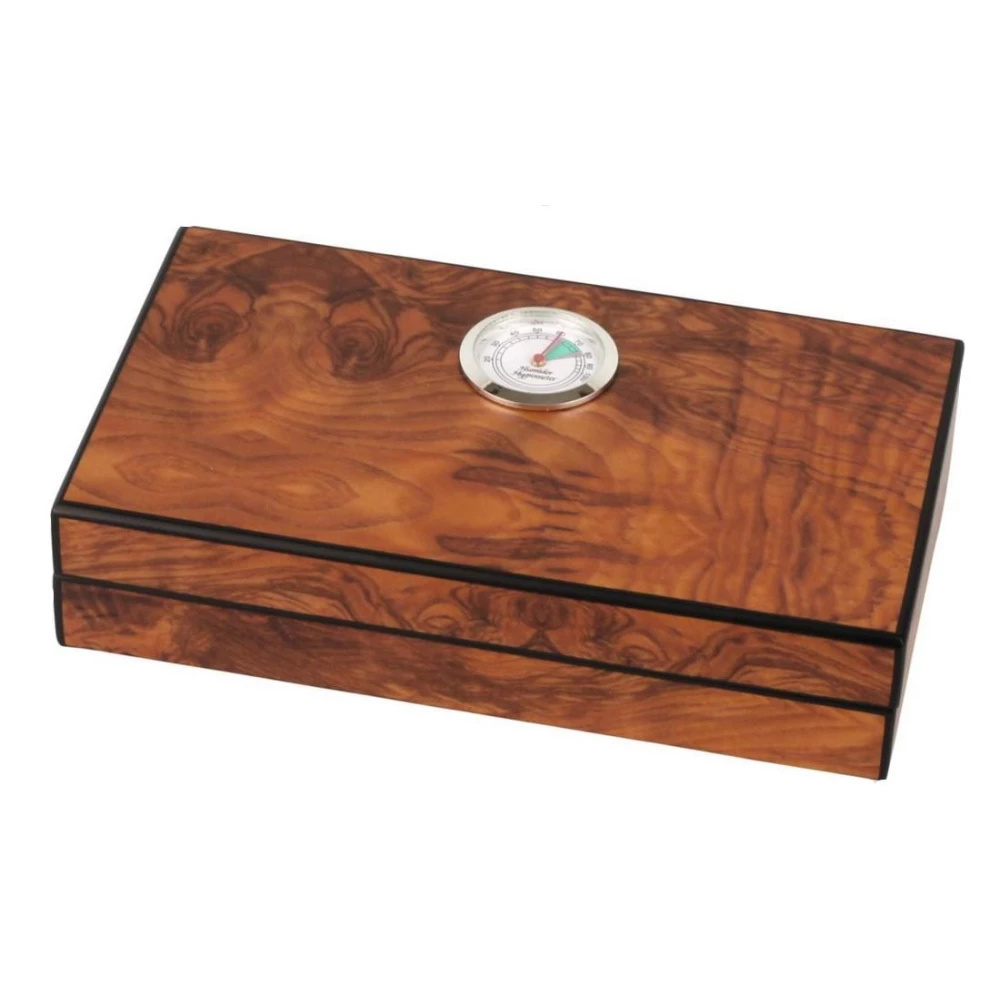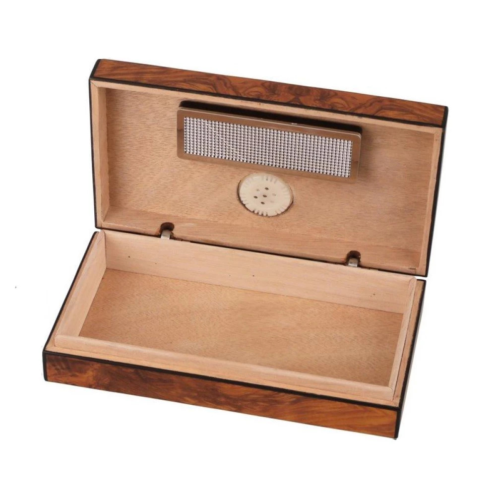 Elegantes Angelo Humidor in dem 4-5 Zigarren sicher aufbewahrt werden können. Die Innenseite ist mit Zedernholz verkleidet und die Außenseite besteht aus Wurzelholz, was für ein stilvolles und langlebiges Design sorgt.