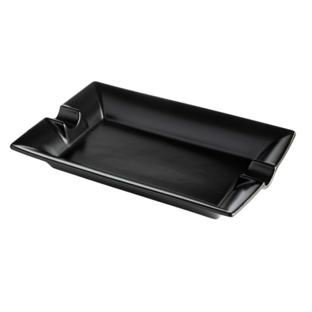 Schwarzer Zigarrenaschenbecher aus Keramik der Marke Angelo mit ausreichend Platz für 2 Zigarren. Der Aschenbecher ist so konstruiert, dass die Zigarre waagerecht darauf aufliegen kann und ihr so ein langer, gleichmäßiger Abbrand beschert wird. Sein elegantes Aussehen wird durch seine klassische schwarze Farbe verliehen und es fügt sich in die Umgebung ein, indem es überall in der Wohnung, im Haus oder im Garten platziert wird.Maße: 27,5 x 17,5 x 4 cm