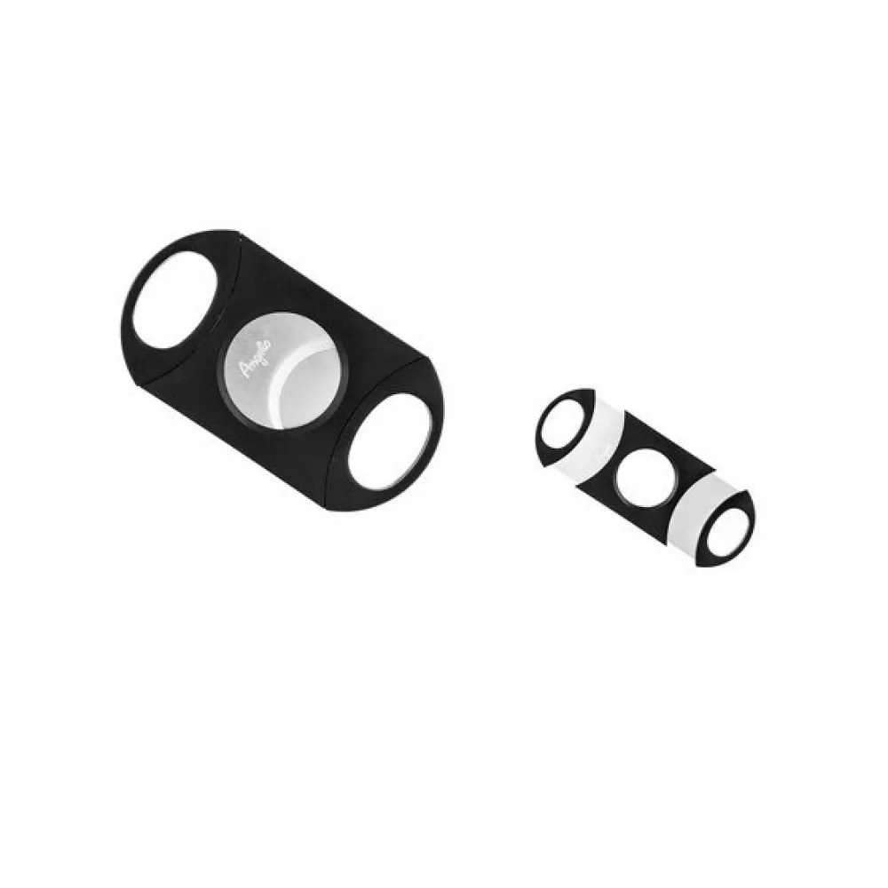 • Zigarrenschneider mit doppelter Klinge und schwarzer Kunststoffabdeckung für Zigarren bis zu 80 Ringe.