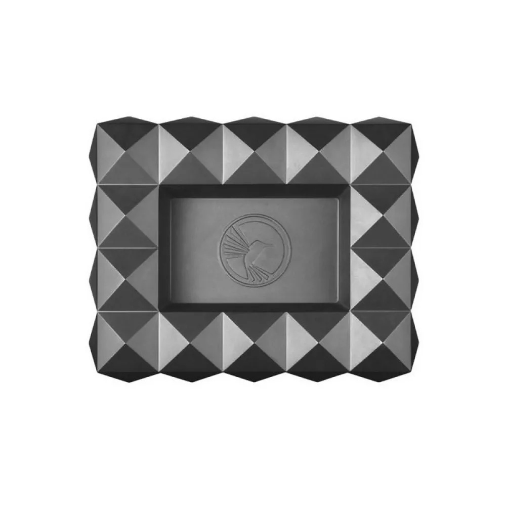 Colibri Quasar Gunmetal Zigarrenaschenbecher aus dunkelgrauem Metall, der ausreichend Platz für bis zu 6 Zigarren bietet. Durch das Quasar-Muster erhält es ein sehr einzigartiges Aussehen, und da die Oberflächen nicht gerade sind, das Licht von allen Seiten unterschiedlich darauf scheint, kann es zum Beispiel in Gesellschaft einer Kerze sehr magisch sein. In der Mitte des Aschenbechers ist das markante Markenzeichen der Marke Colibri zu sehen.Abmessungen:25,50 x 21,50 x 6,50 cmGewicht: 2,10 kg