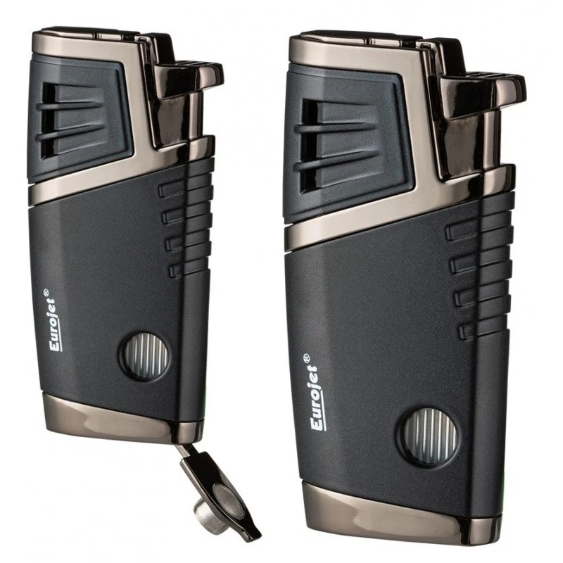 Eurojet Feuerzeug 2xJet, schwarz/anthrazit mit Bohrer