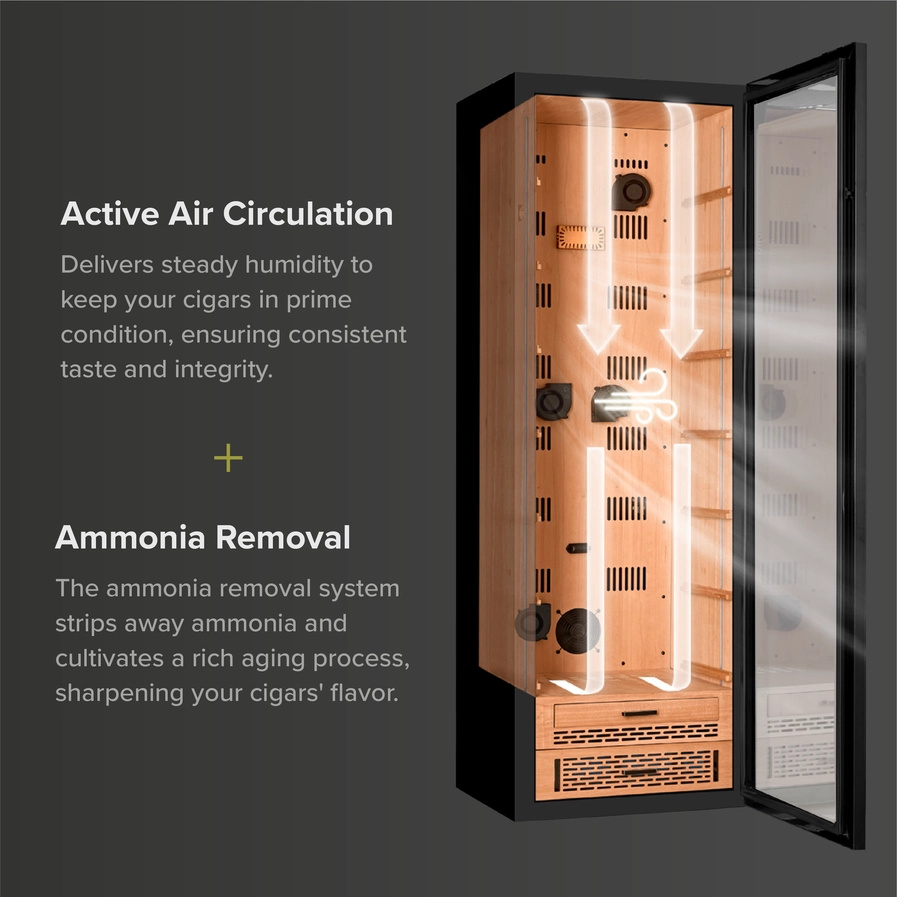 Dank seines fortschrittlichen aktiven Feuchtigkeits- und Temperaturregelungssystems sorgt der Airo Fridgador dafür, dass Ihre Zigarren im idealen Klima zum Reifen und Genießen gelagert werden.