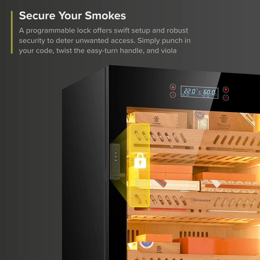 Ausgestattet mit intuitiver digitaler Steuerung, die die Verwaltung Ihrer Zigarrensammlung zum Kinderspiel macht: Wählen Sie einfach die gewünschte Luftfeuchtigkeit und Temperatur auf dem Display aus, und schon kann es losgehen.