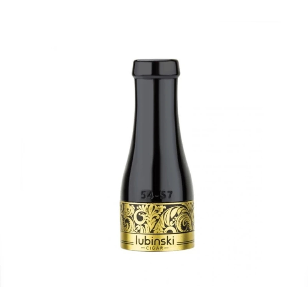 Zigarrenmundstück aus Acryl mit goldenem Muster auf schwarzem Grund, das für Zigarren mit einem Durchmesser von 22 mm verwendet werden kann. Auf dem Rand des Mundstücks befindet sich die Lubinski-Aufschrift.