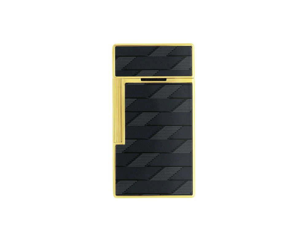 S.T. Dupont LI Biggy 1872 Schwarzes Monogramm, schwarzes und goldenes Feuerzeug mit St. Dupont-Schriftzug. Durch die Kombination der Eleganz der Line 2 mit der Kraft des Megajets ist der Big D ein Feuerzeug mit modernem Look und hoher Leistung. Dank ihrer starken blauen Brennflamme kann sie bis zu 1500 Grad Celsius heiß werden, sodass Sie Ihre Lieblingszigarre problemlos anzünden können. Das Feuerzeug kann nachgeladen und an die Flammengröße angepasst werden. Damit Ihr neues Feuerzeug lange zuverlässig funktioniert, wir empfehlen die Verwendung von original S.T. Dupont Gas; für Biggy Sturmfeuerzeuge mit dem Schwarzgas Empfohlen für den Einsatz.