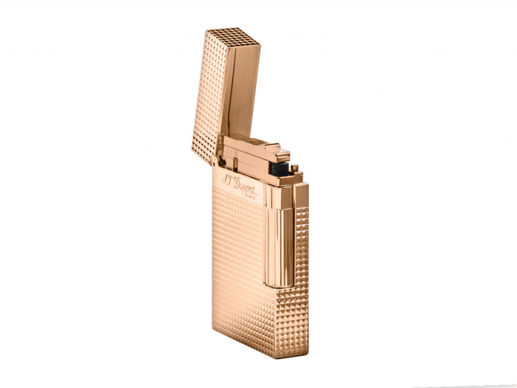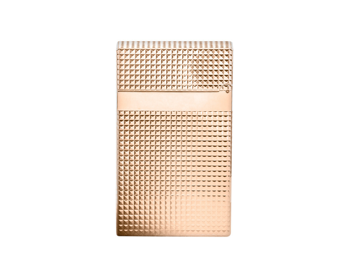 Feuerzeug Roségold vergoldet, poliert mit Waffelmuster. Maße 61,2x36,6x10,7mm, Gewicht 110g. Referenznummer: 016424, ID: ST34718160221HC. Artikelnummer: 10000056979. Original S.T. Dupont Box und Garantie Papiere, Full Set.