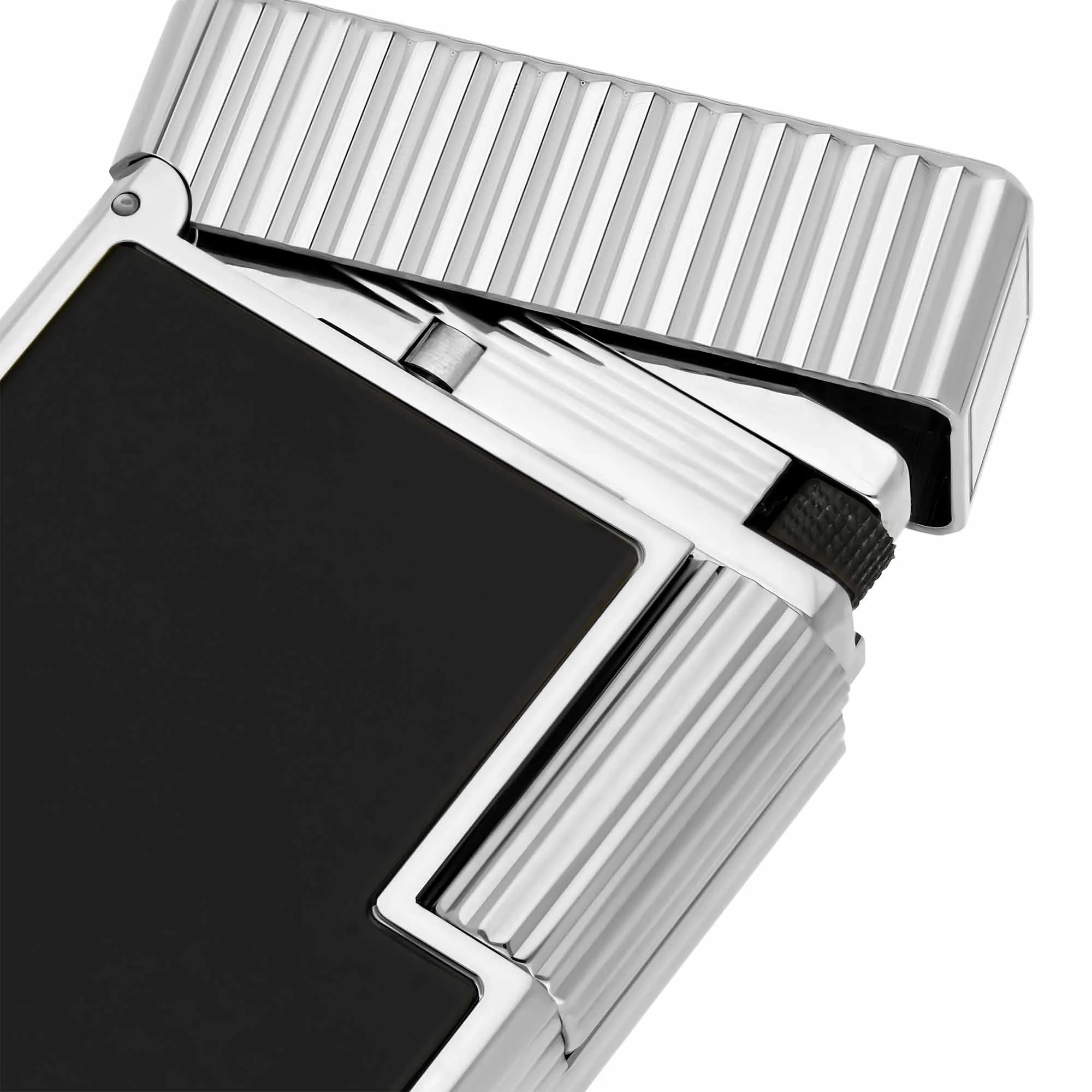 Das erste Luxusfeuerzeug kehrt zurück. Von S.T. Dupont erfunden und von Prominenten geliebt, nimmt die Linie 1 neue Dimensionen an. Mit der charakteristischen vertikalen Guilloche und dem sehr eleganten glänzenden schwarzen Lack verkörpert er eine außergewöhnliche Hommage an die Handwerkskunst des Hauses. Feuerzeug Linie 1 Cling glänzender schwarzer Lack verziert mit einem Hut mit vertikaler Guilloche Palladium-Finish. Mit einer doppelten gelben Flamme und dem berühmten "Cling" an der Öffnung. Zugehöriger Feuerstein: schwarz (REF 900601) Zugehörige Gasnachfüllung: rot (REF 900435) Feuerzeug wird mit leerem Gas geliefert, Nachfüllung separat erhältlich.