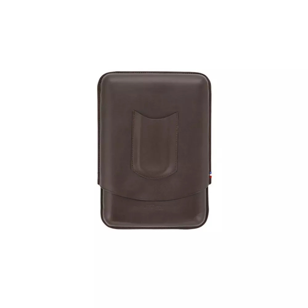 S.T. Dupont Zigarrenetui aus hochwertigem Leder in tabakbrauner Farbe für 5 Zigarren mit einer separaten kleinen Tasche auf der Vorderseite des Etuis für einen Zigarrenschneider. Das handgefertigte Zigarrenetui An den Seiten die französischen Flaggenfarben Blau, Weiß und Rot mit Nähten, das ist es, was dieses exklusive Zigarrenetui unverwechselbar macht.