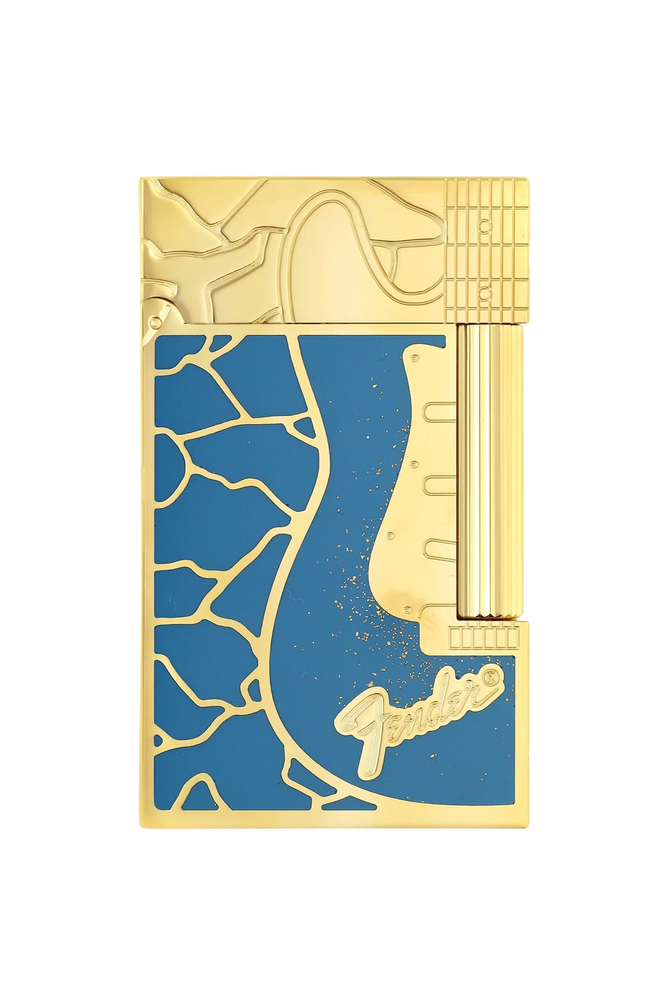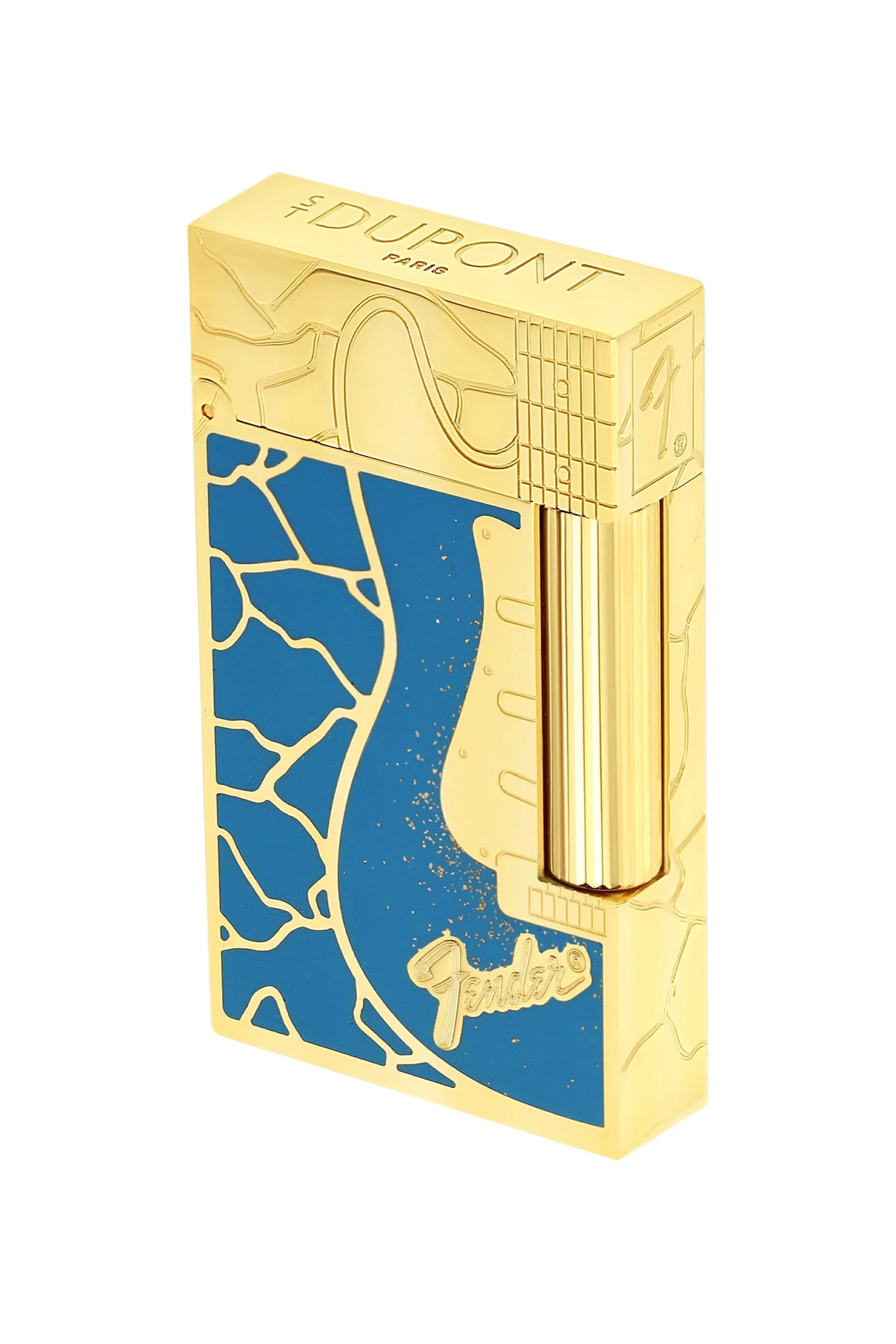 Exklusives S.T.Dupont FENDER C16026CL Feuerzeug aus der Ligne 2 Kollektion. Fender Gitarren-Design in blauer Lackierung, Goldstaub-Verzierung, berühmter Cling-Effekt.