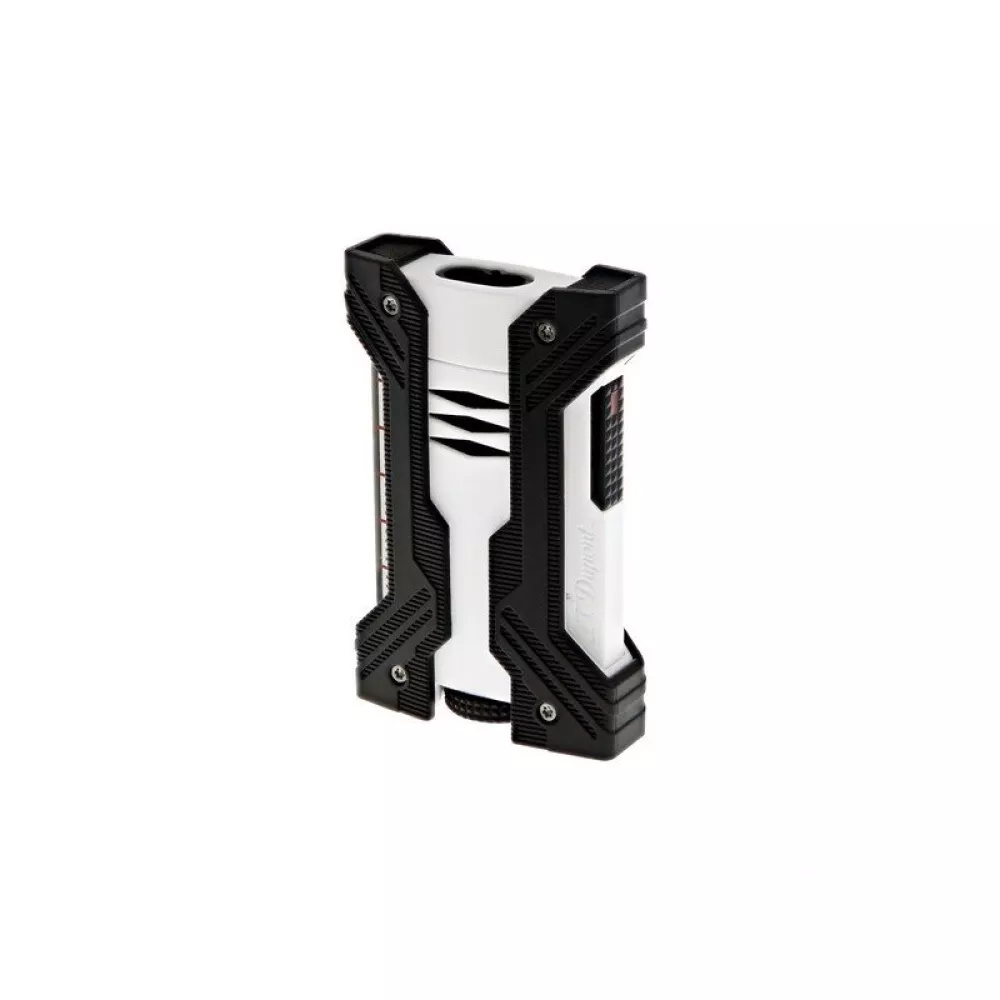 Modernes Outdoor-Markenfeuerzeug von S.T. Dupont im modernen Design mit kräftiger und windstabiler Doppel-Flamme.
