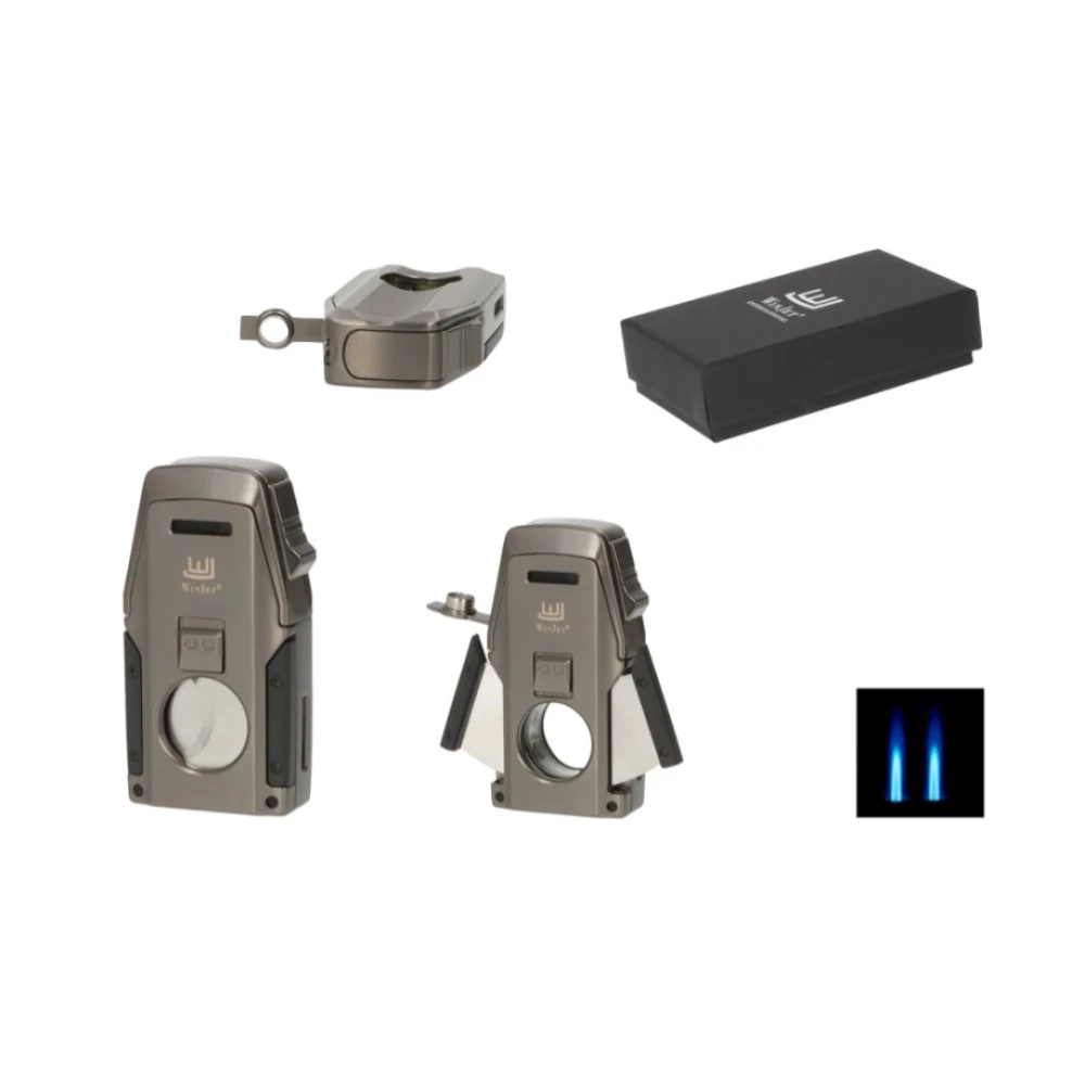 Das Winjet Jet Anthrazit ist ein multifunktionales, elegantes Feuerzeug, das sich durch modernes Design, zuverlässige Leistung und maskulines Erscheinungsbild auszeichnet. Das anthrazitgraue Design mit einem robusten Metallgehäuse ist sowohl stilvoll als auch langlebig, sodass es lange Zeit sein hochwertiges Aussehen behält. Das Feuerzeug wird von einer zweistrahligen Flamme angetrieben, einer starken, winddichten Filterflamme.